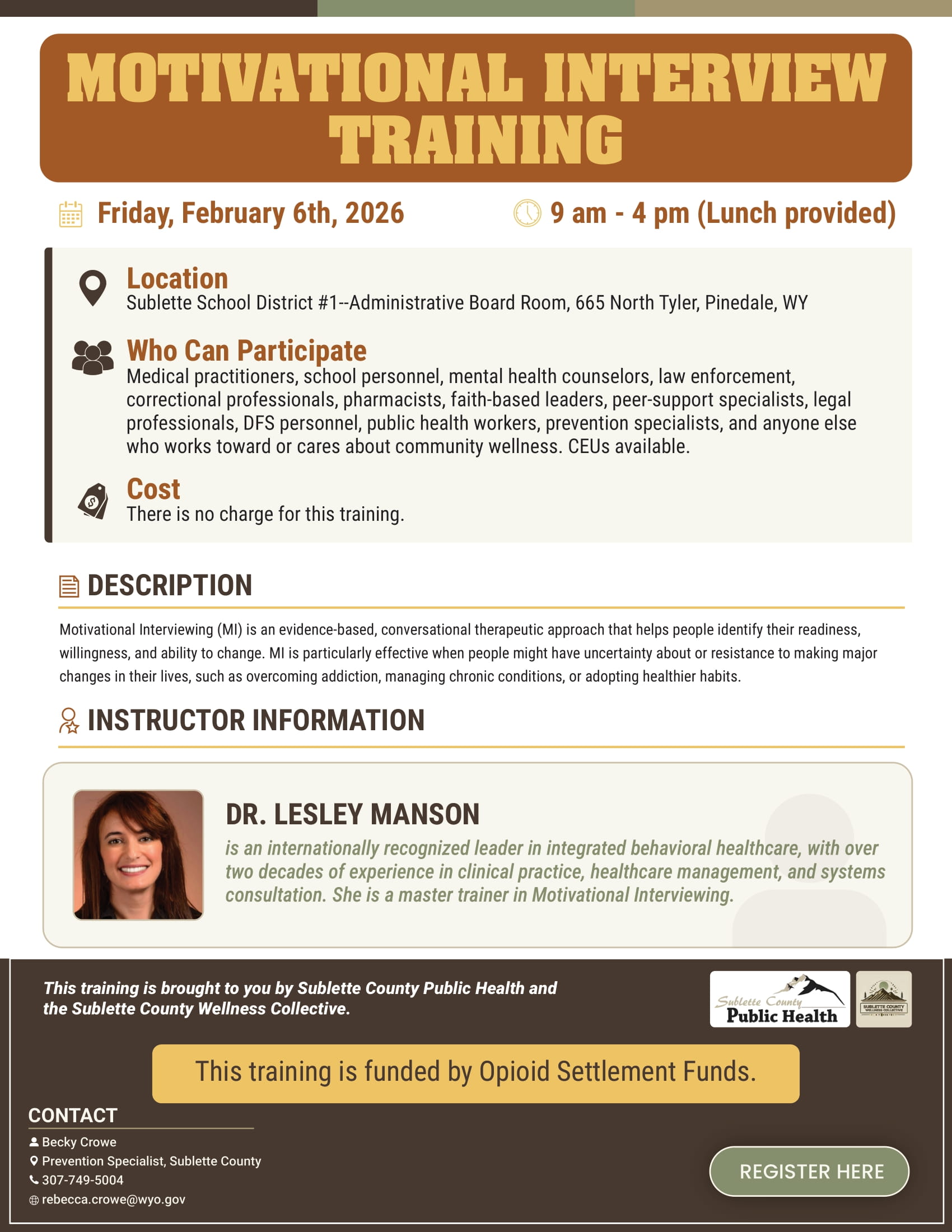 Location: Sublette School District #1–Administrative Board Room, 665 North Tyler, Pinedale, WY