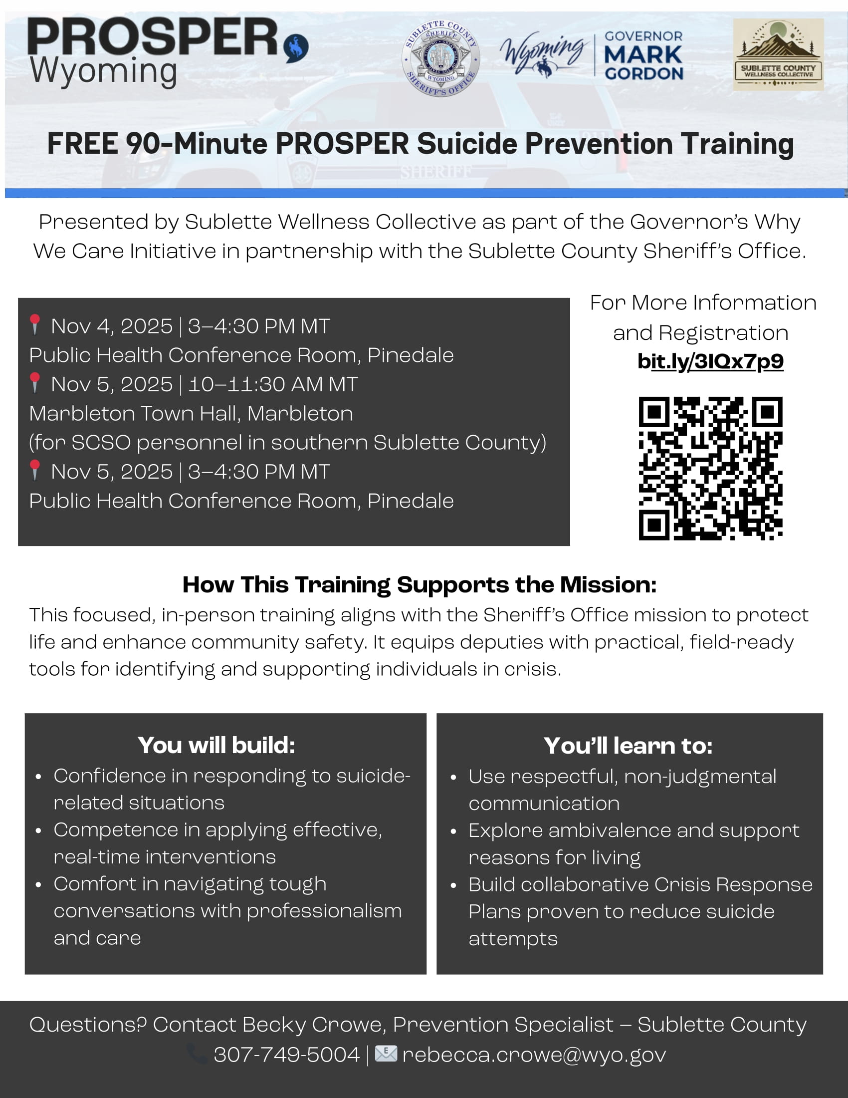 PROSPER suicide prevention training for law enforcement November 5th 10 AM Meeting